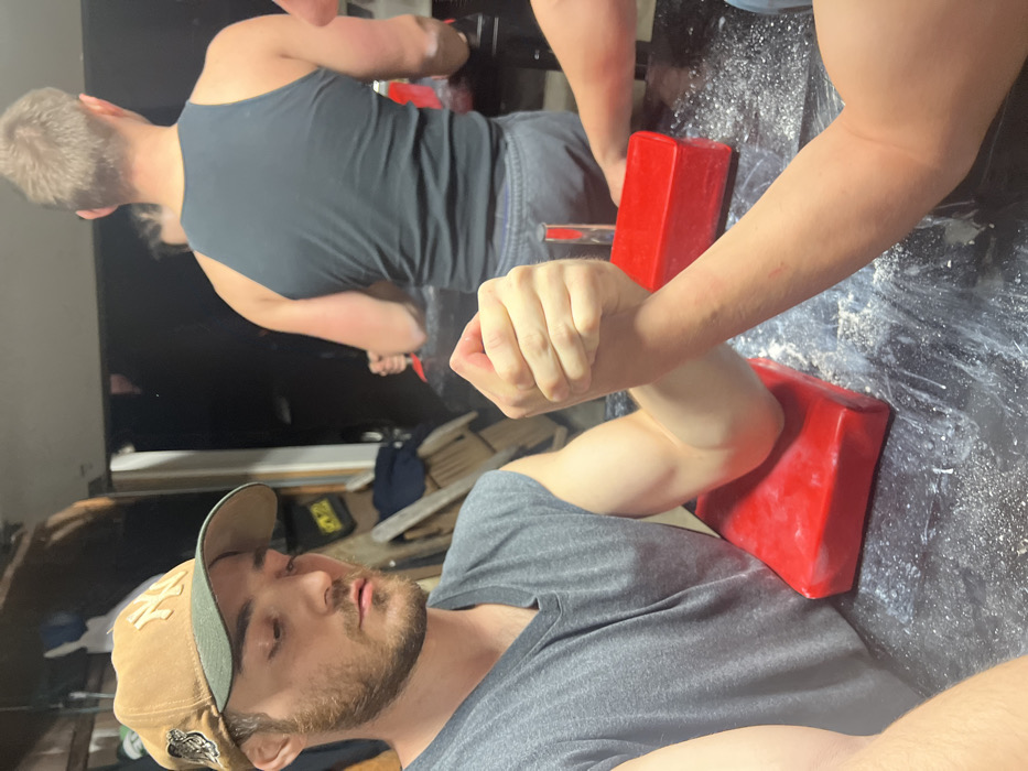 In the City of Newburgh, United States of America, an indoor scene depicts an arm wrestling match
