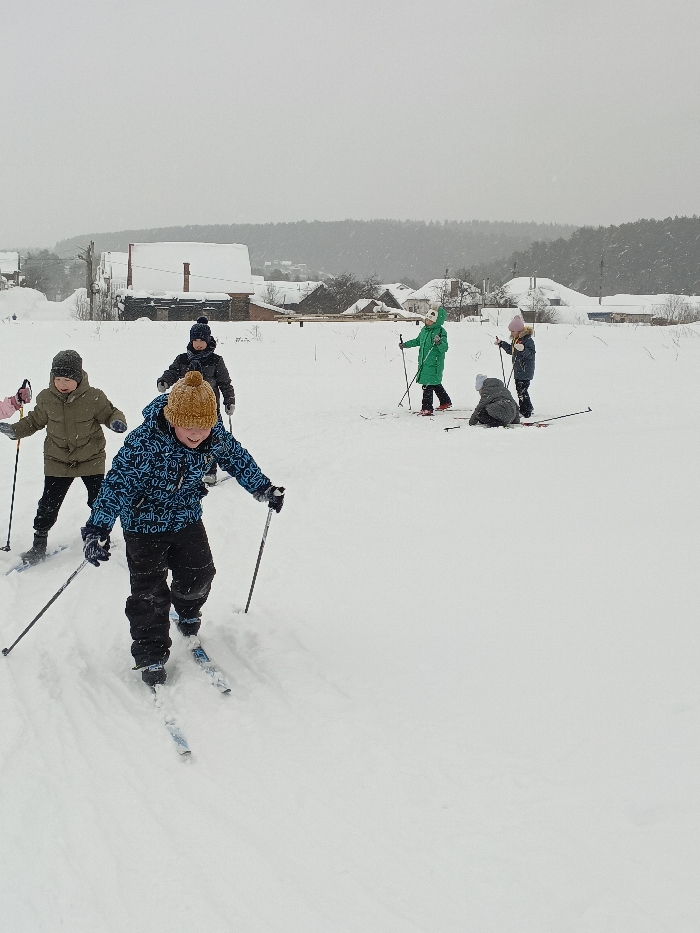 - "Six individuals, identified as children, are engaged in cross-country skiing within a snow-covered open field on the outskirts of Sarapul, Russia" by FM-F2yRz1, licensed under CC BY 4.0