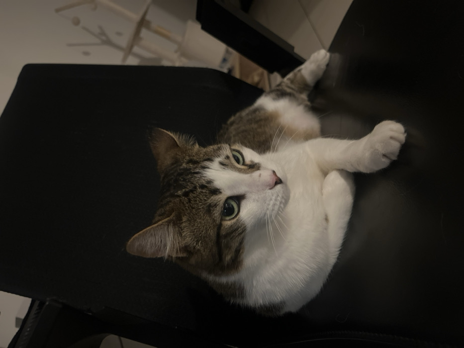 - "A domestic cat is observed lying on a black office chair in an indoor setting within Noumea, France" by FM-xxu5D3, licensed under CC BY 4.0