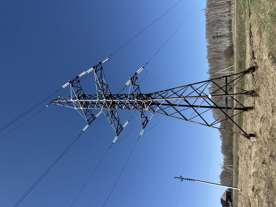 - "A tall, rusty, metal electrical tower, with numerous wires running from it, stands on a field of dry grass" by FM-5viFC3, licensed under CC BY 4.0