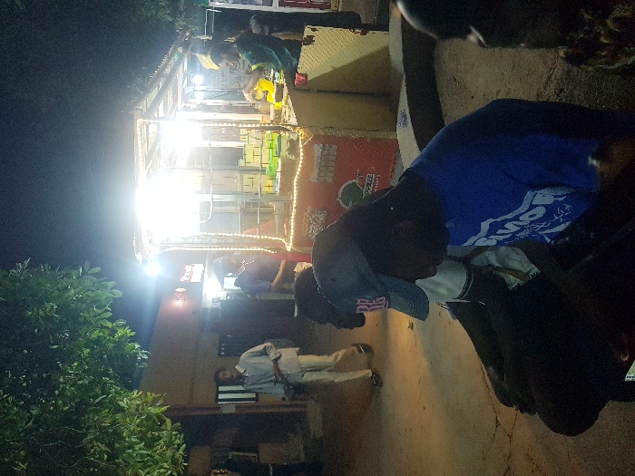 This nighttime scene in Jama A, Nigeria, depicts an illuminated outdoor commercial or social gathering