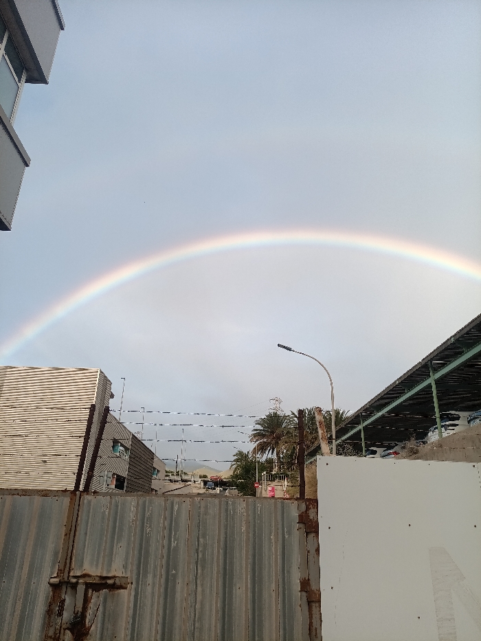 - "The scene depicts an outdoor urban environment in Ingenio, Spain, under a light gray, overcast sky featuring a prominent rainbow arcing across the upper half of the frame" by FM-63vGE2, licensed under CC BY 4.0