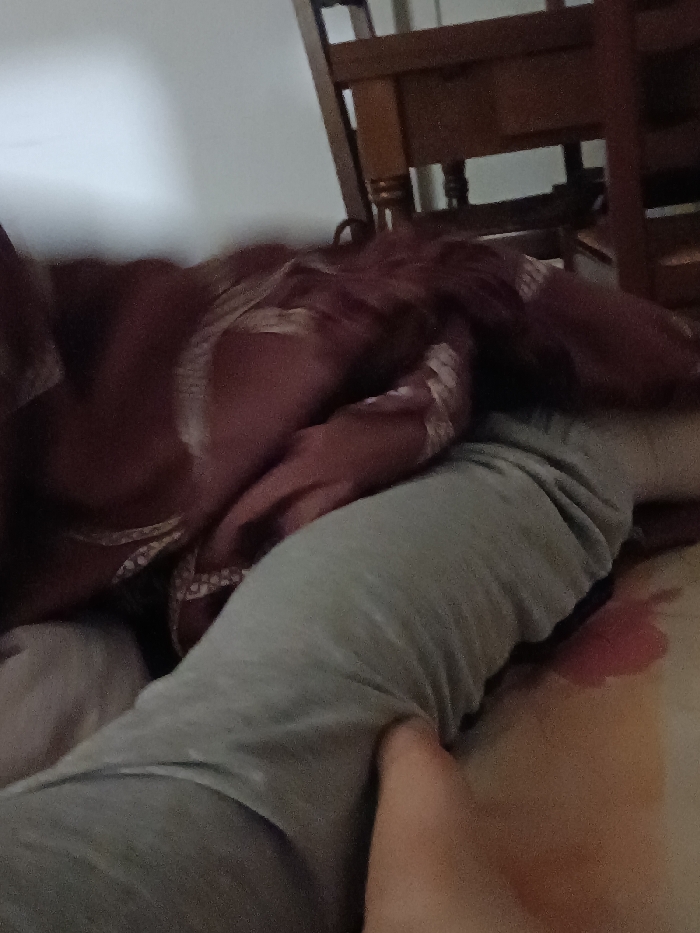 - "A person wearing gray pants is lying down, covered by a maroon and gold patterned blanket" by FM-3nI992, licensed under CC BY 4.0