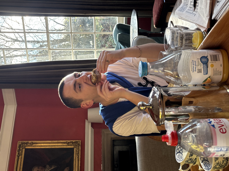 This image depicts a male individual eating in a dining area within an establishment located in Stafford, United Kingdom