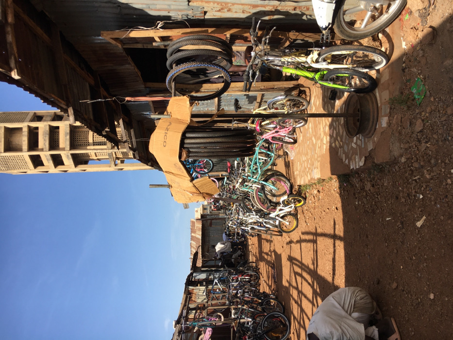 - "An outdoor bicycle market is depicted under a clear blue sky on a sunny day in Jos, Nigeria, identifiable by the distinctive hexagonal, multi-story concrete building of the Jos Main Market (Terminus Market) in the background" by FM-waaGr2, licensed under CC BY 4.0