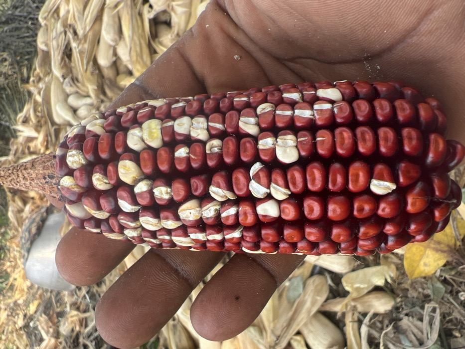 - "An individual's dark-skinned hand grasps a single ear of corn, held vertically, in Wuinta, Ghana" by FM-6dzJp2, licensed under CC BY 4.0