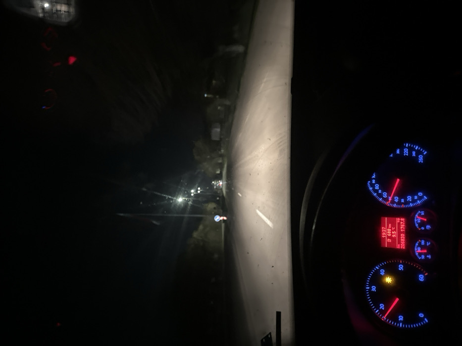- "The image presents a nighttime scene observed from the interior of a moving vehicle, identified by its dashboard as likely a Volkswagen model" by FM-lXaTH3, licensed under CC BY 4.0