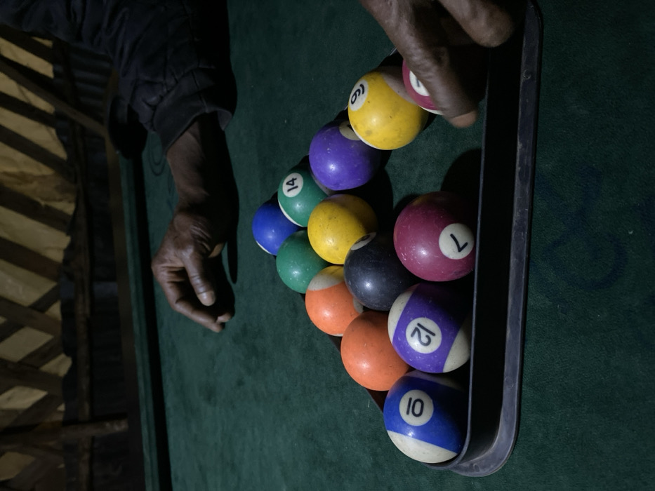 - "A triangular rack holds billiard balls on a green felt surface" by FM-4CGI82, licensed under CC BY 4.0