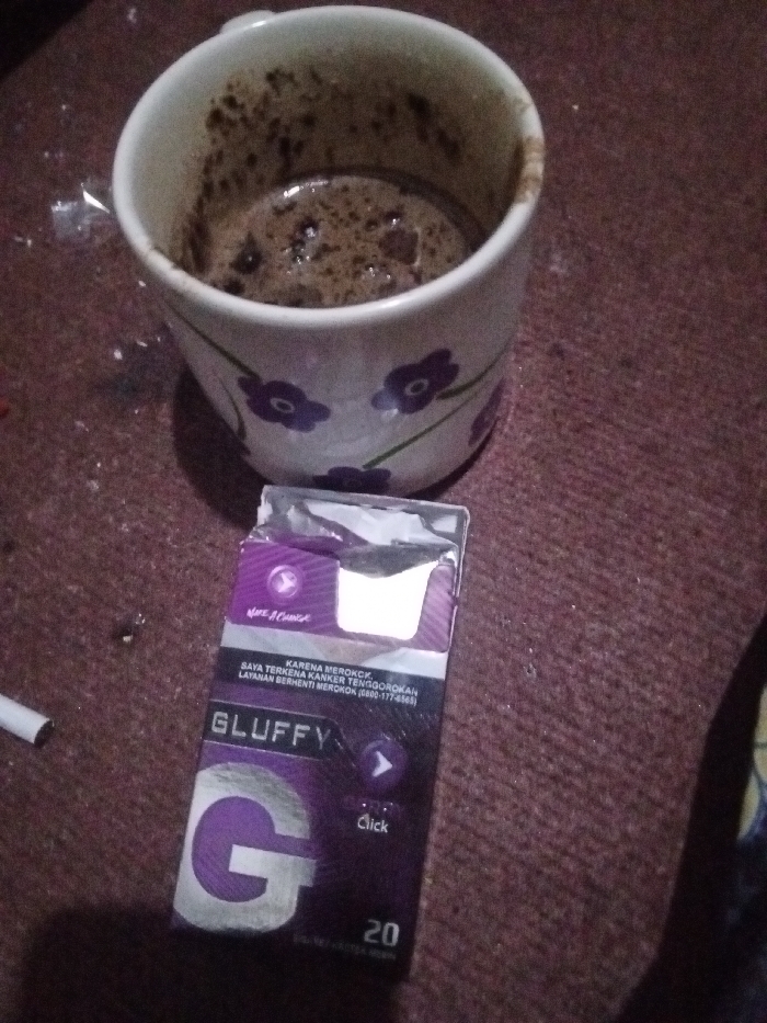 - "A mug of what appears to be coffee sits near an open pack of “Gluffy” cigarettes" by FM-jqc4V2, licensed under CC BY 4.0