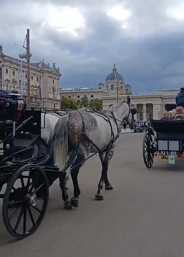 - "Two horse-drawn carriages stand on a paved road under a cloudy sky" by FM-KlF1C3, licensed under CC BY 4.0