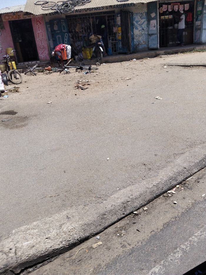 - "The scene depicts a commercial street in Mkomani ward, Kenya, characterized by a dirt shoulder separating an asphalt road from a row of three utilitarian storefronts under a corrugated metal roof" by FM-SQSHQ2, licensed under CC BY 4.0