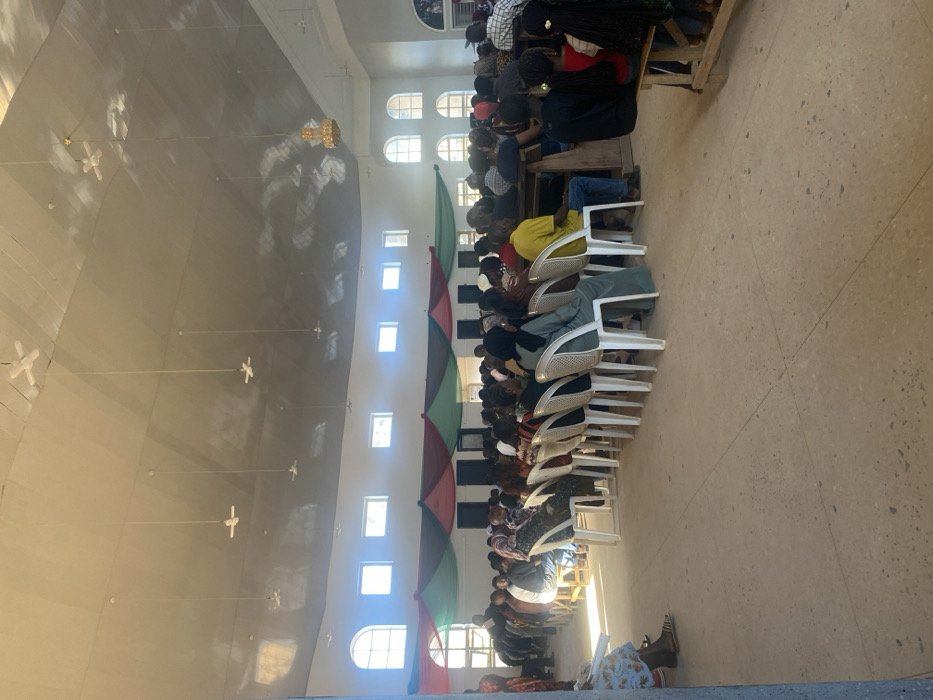 This image depicts a large indoor gathering within a spacious hall in Jos, Nigeria