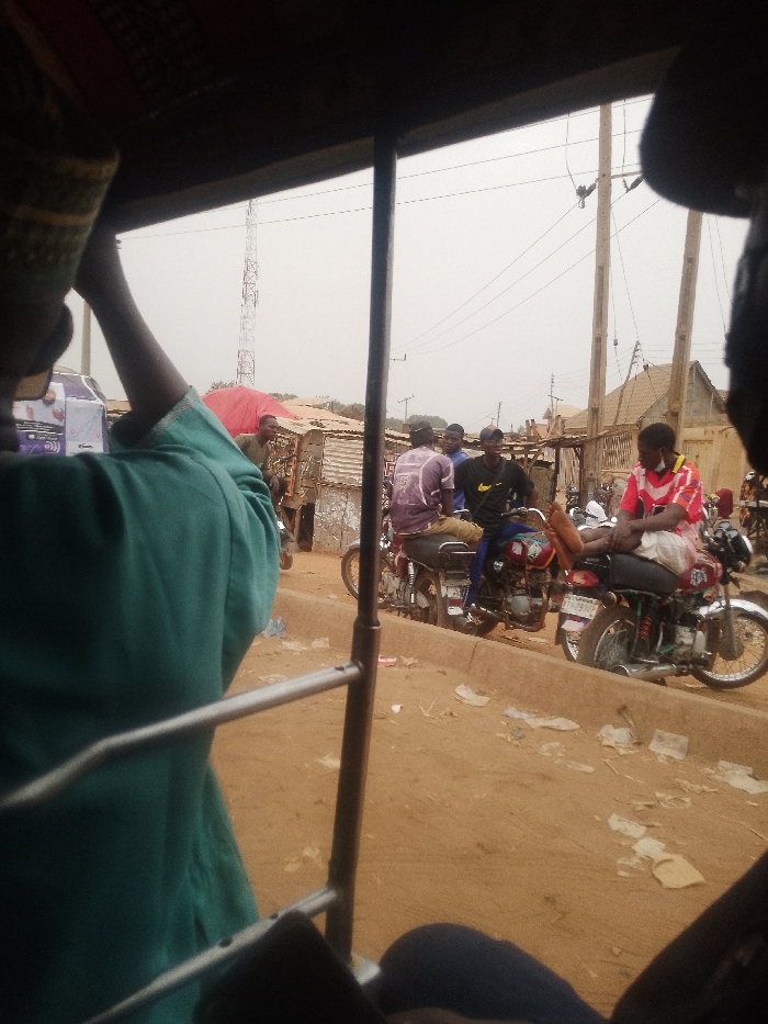 - "The image depicts a street scene in Lapai, Nigeria, viewed from inside a vehicle, likely a tricycle" by FM-4Z3Ky1, licensed under CC BY 4.0