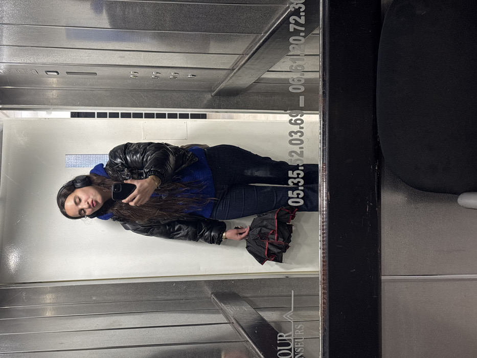 - "A woman in a black puffer jacket, blue sweater, and jeans is taking a selfie in an elevator mirror" by FM-e0CIi1, licensed under CC BY 4.0