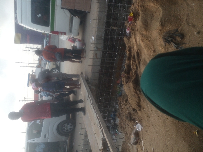 The scene, located in the city of Lekki, Nigeria, depicts an urban roadside area with ongoing excavation and pedestrian activity