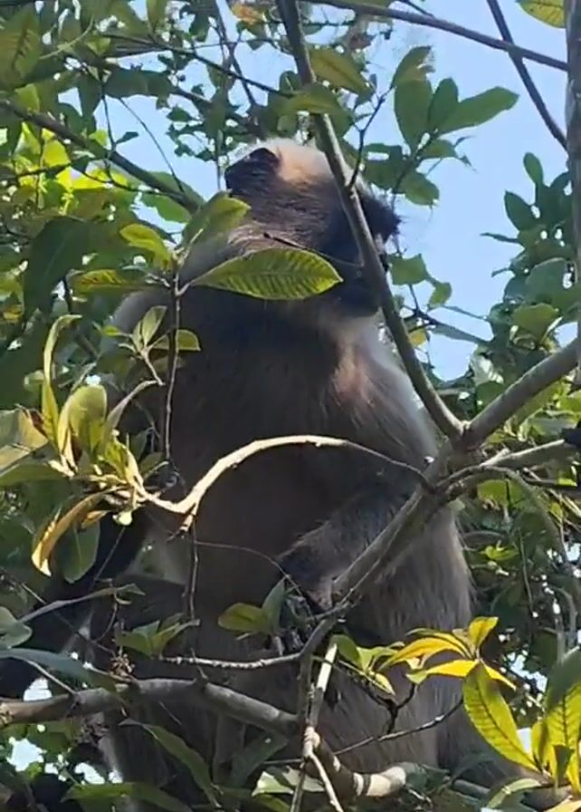 - "A gray langur monkey sits nestled in the branches of a tree with green leaves, looking downwards" by FM-yj6ly1, licensed under CC BY 4.0
