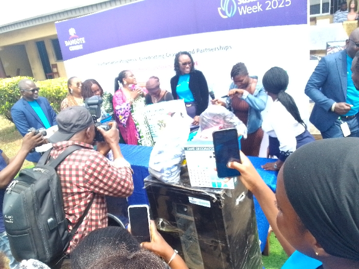An outdoor event is depicted in daylight at the Dangote Centre, University of Lagos, Akoka, Yaba, Lagos, Nigeria