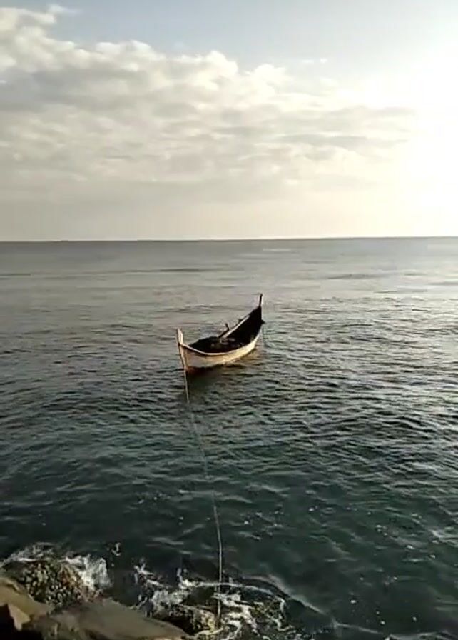 - "A small, white fishing boat is moored in the ocean near a rocky coastline" by FM-sAcf03, licensed under CC BY 4.0