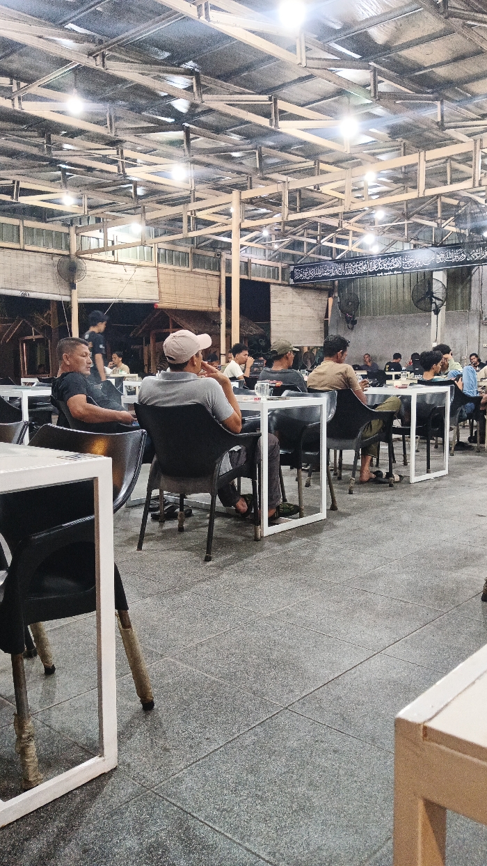 - "The scene depicts the interior of a brightly illuminated, semi-open-air cafe or restaurant at night, located in Lhokseumawe, Indonesia" by FM-Vebw93, licensed under CC BY 4.0