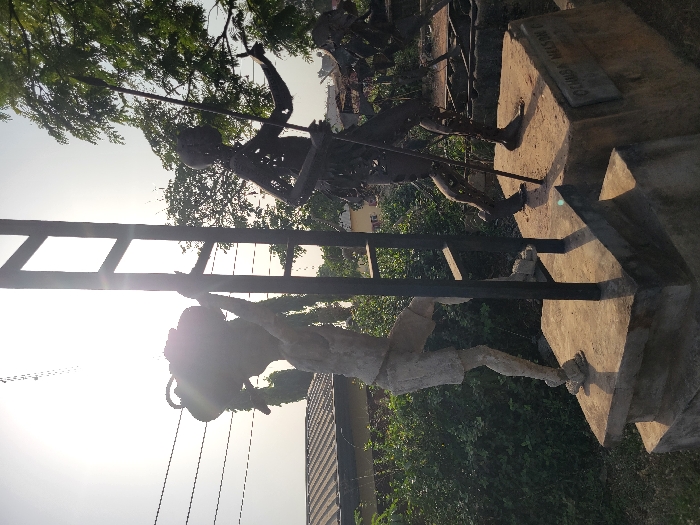 - "The image displays an outdoor public art installation in San Martín, Colombia, illuminated by bright daylight from the upper-left, causing lens flare" by FM-bWxZs2, licensed under CC BY 4.0