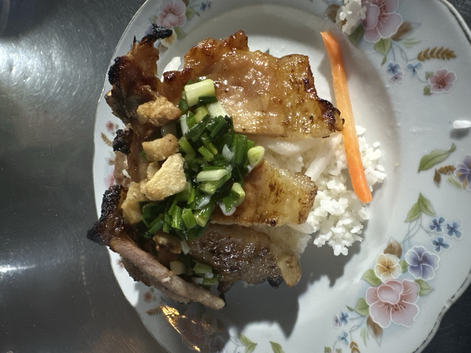 - "On a floral-patterned plate sits a serving of Vietnamese cơm tấm" by FM-r9LMg2, licensed under CC BY 4.0