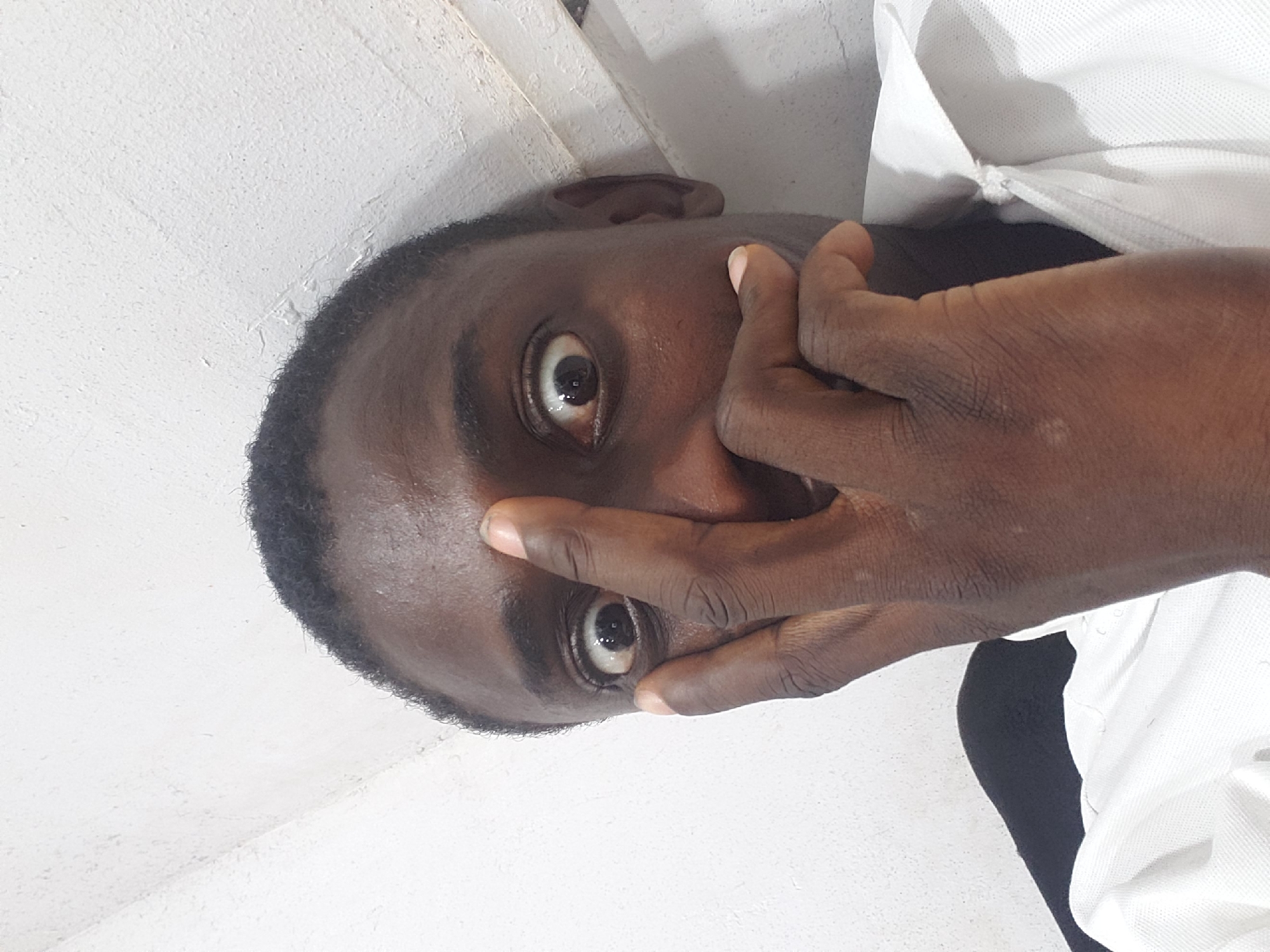 The image, captured indoors in Adankolo, Nigeria, presents a medium close-up of an individual with dark skin and short, dark hair, directly facing the camera