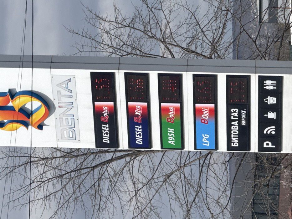 - "The image displays a vertical electronic price sign for a Benita fuel station, located in the city of Topoli, Bulgaria" by FM-aIyKG2, licensed under CC BY 4.0