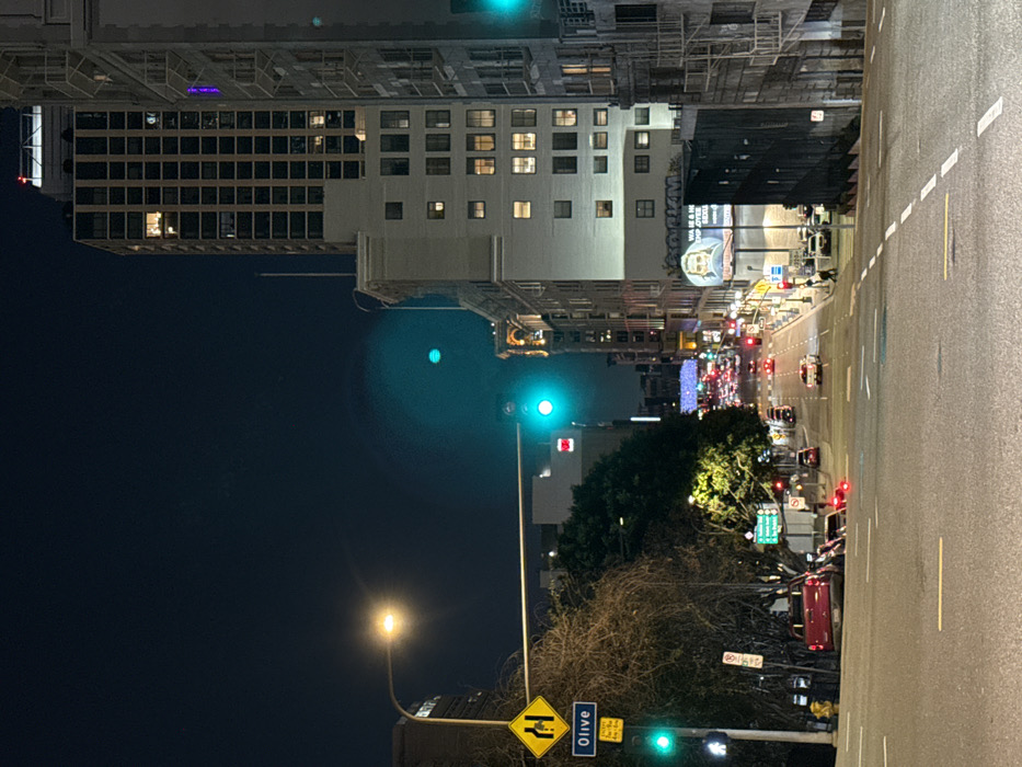 - "A nighttime, downhill street view in downtown Los Angeles, United States of America, depicts Olive Street" by FM-zT6qt2, licensed under CC BY 4.0