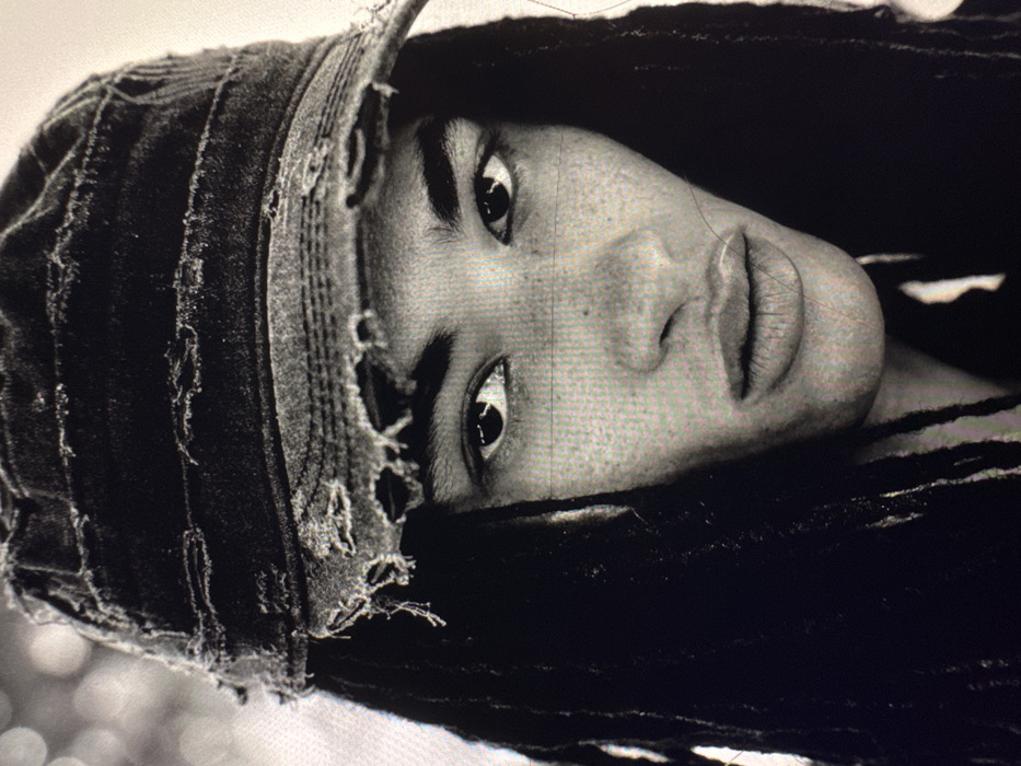 - "A close-up black and white portrait depicts a person with dreadlocks, partially obscured by a worn, tattered hat" by FM-52BZY2, licensed under CC BY 4.0