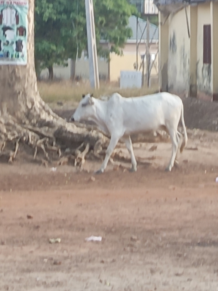 - "A white cow walks across a dirt road" by FM-eoEuF2, licensed under CC BY 4.0