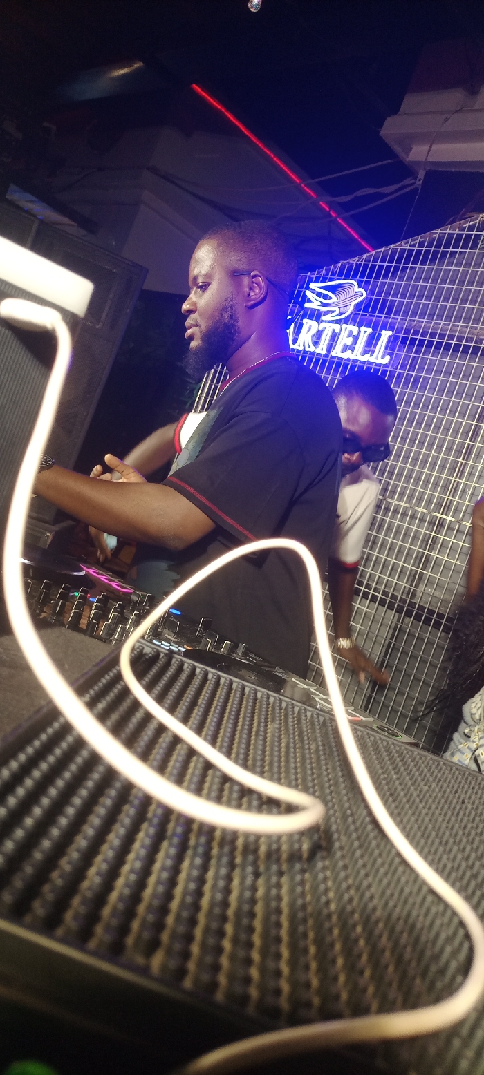 - "A DJ stands in profile at a mixing board in a nightclub" by FM-PJyUA2, licensed under CC BY 4.0