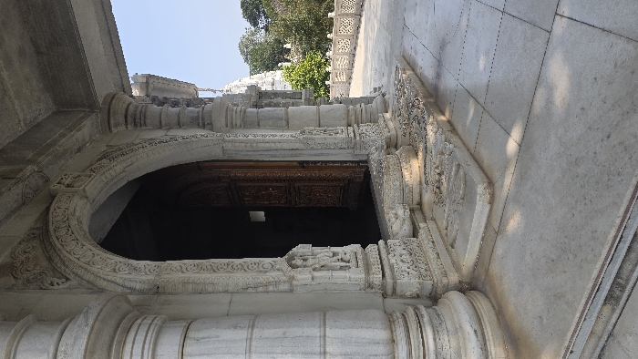 - "The image displays the grand entrance of a white stone temple or elaborate building in the city of Unknown, India" by FM-70rZN2, licensed under CC BY 4.0