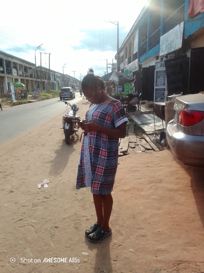The image depicts a daytime street scene in Egbagu, Nigeria