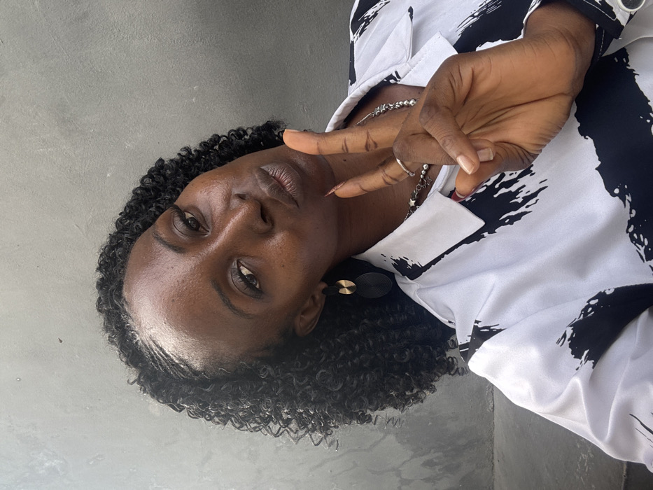 The image displays a dark-skinned female individual posing for a close-up photograph in the city of Ado, Nigeria