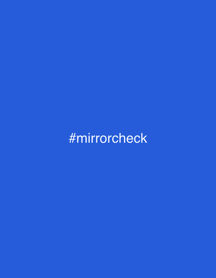 The image displays a solid blue background. Centered on this background is the white text "#mirrorcheck". No individuals, specific objects, or environmental details are discernible within the image. The image provides no visual information to indicate a location in the city of Whistler, Canada, or any other geographical area.
