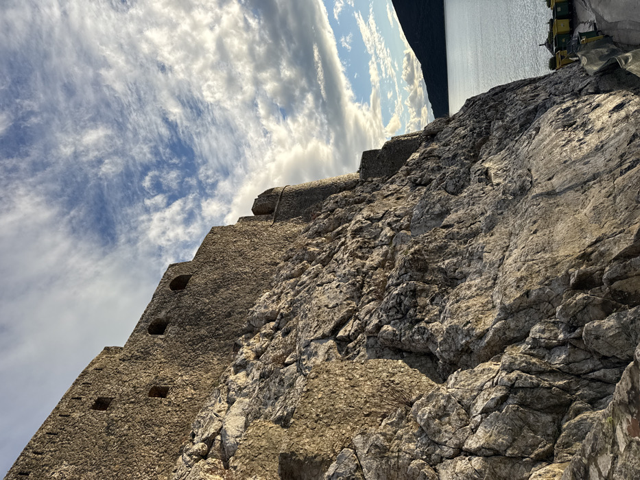- "The image displays a large stone fortress wall, identified as the Kanli Kula Fortress, built into a steep, rocky cliff face overlooking a body of water in Herceg Novi, Montenegro" by FM-qIaSs1, licensed under CC BY 4.0