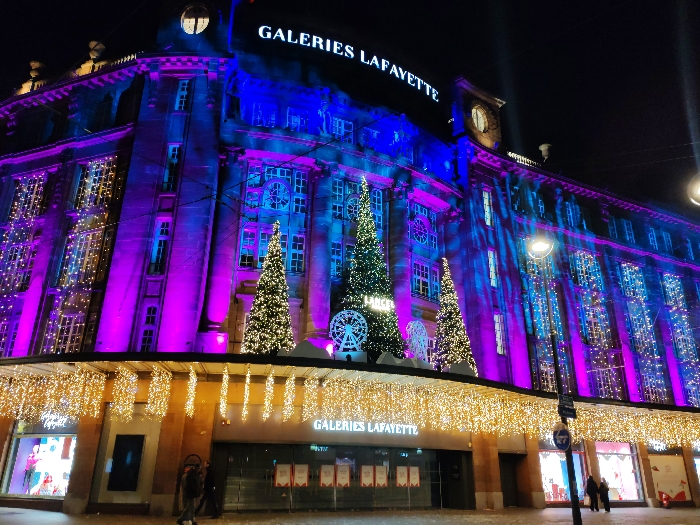 - "Galeries Lafayette is brightly illuminated at night" by FM-S8GQG3, licensed under CC BY 4.0