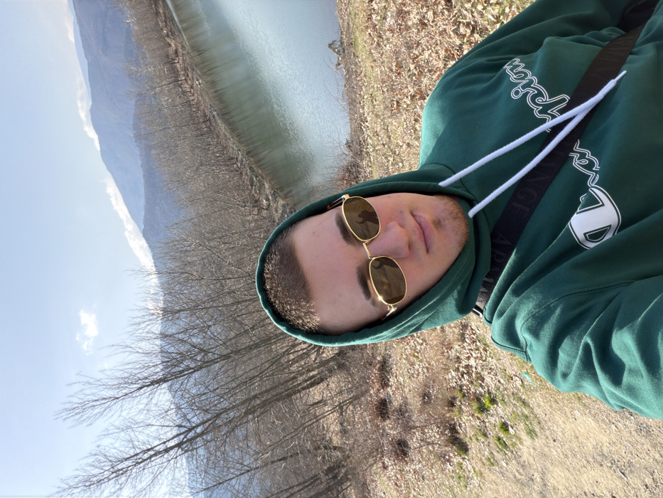 A male individual is depicted in a close-up, angled selfie taken outdoors in Kolarovo, Bulgaria