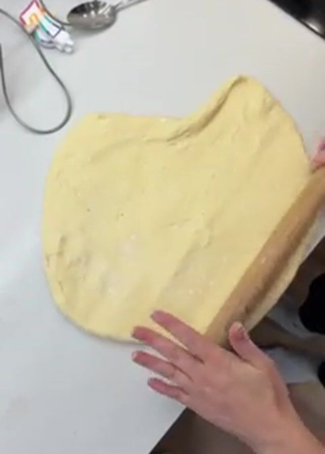 - "A person is rolling out a piece of dough on a white countertop" by FM-3pJMh1, licensed under CC BY 4.0