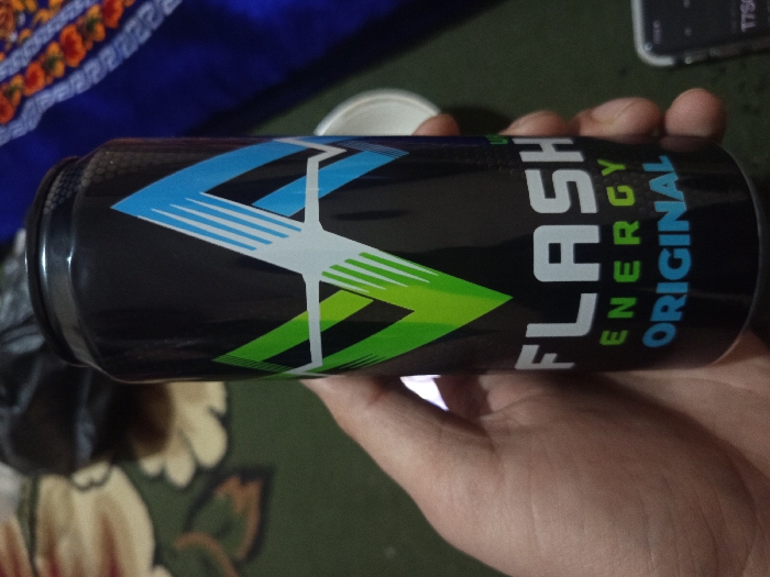 - "An unidentified individual's hand holds a black "FLASH ENERGY ORIGINAL" branded energy drink can vertically in an indoor setting within the city of Unknown, Unknown" by FM-SzWEH2, licensed under CC BY 4.0