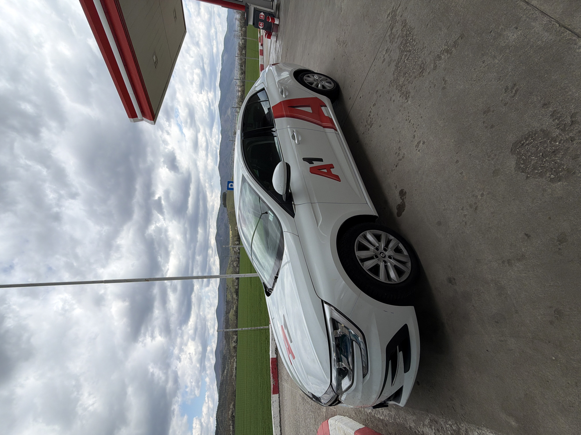 A white car with red "A1" branding on the side is parked on a concrete surface, likely a gas station or rest stop