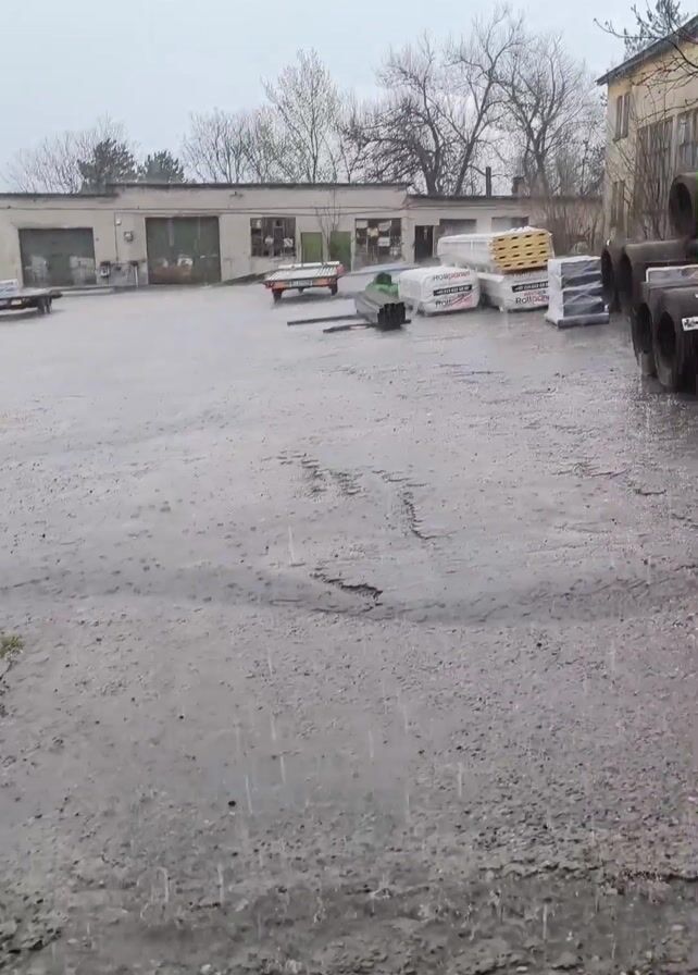 concrete yard on a rainy day
