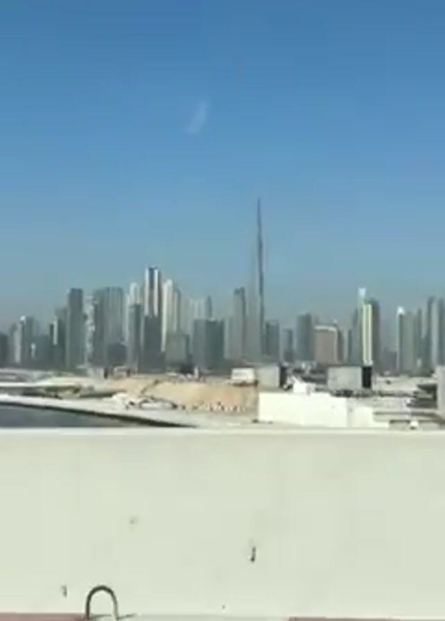 view of the Dubai skyline with the Burj Khalifa prominently displayed