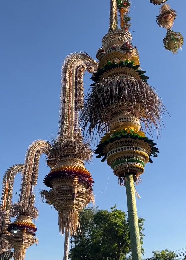 - "The camera pans slowly from right to left across a row of tall, ornate bamboo structures known as penjor, set up along a sidewalk in Bali, Indonesia" by FM-7Etsn1, licensed under CC BY 4.0