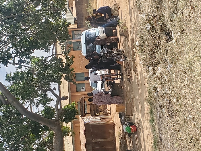 The image depicts an outdoor scene in Barikin Gidar Kanat, Nigeria, under a large, leafy tree providing shade