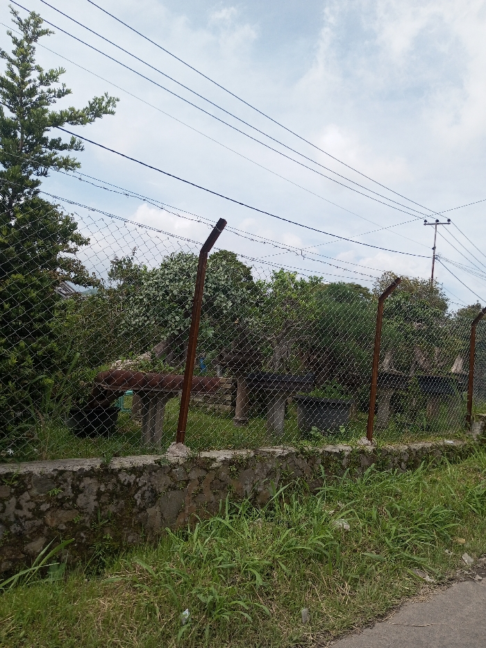 This image, taken in the city of Namthoung, Laos, depicts an outdoor scene focusing on a fenced-off area adjacent to a public thoroughfare