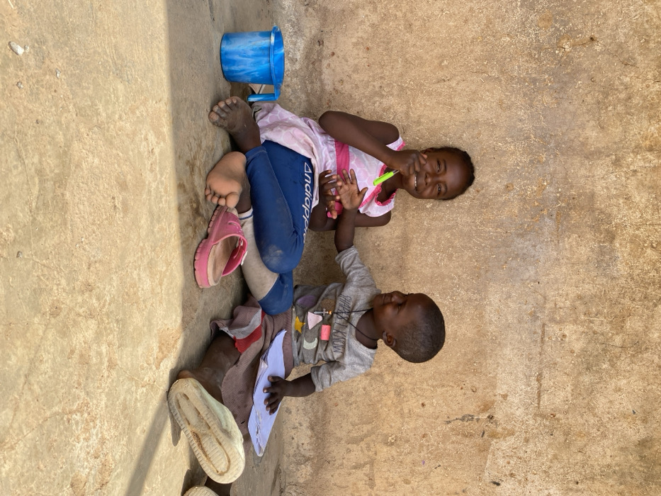 - "Two children are seated on a concrete surface against a textured, light brown wall in Kuru Dungus, Nigeria" by FM-4CGI82, licensed under CC BY 4.0