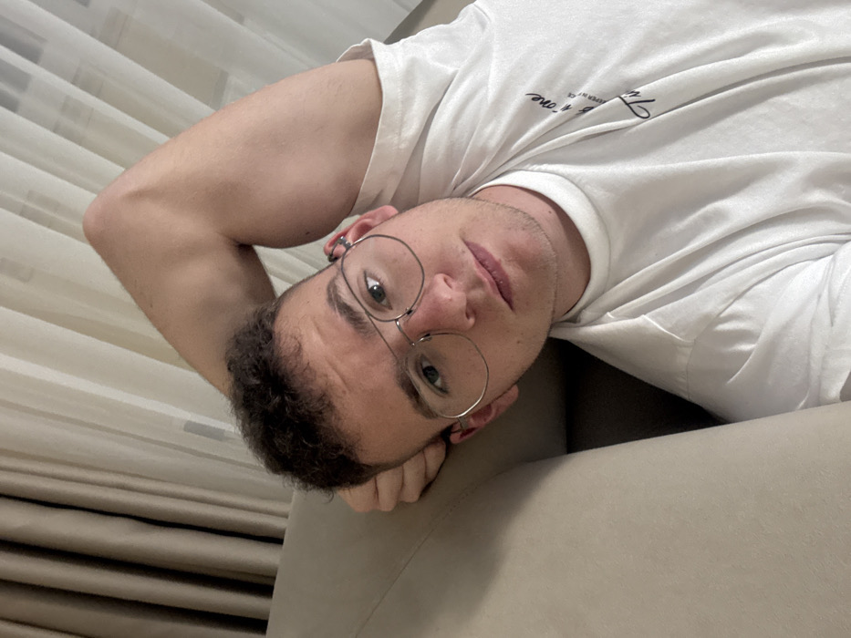 - "An individual male, appearing to be in his twenties, is depicted in a close-up, upward-angled shot, lying on his left side on a light-colored upholstered surface, presumably a couch or bed" by FM-18TYr2, licensed under CC BY 4.0
