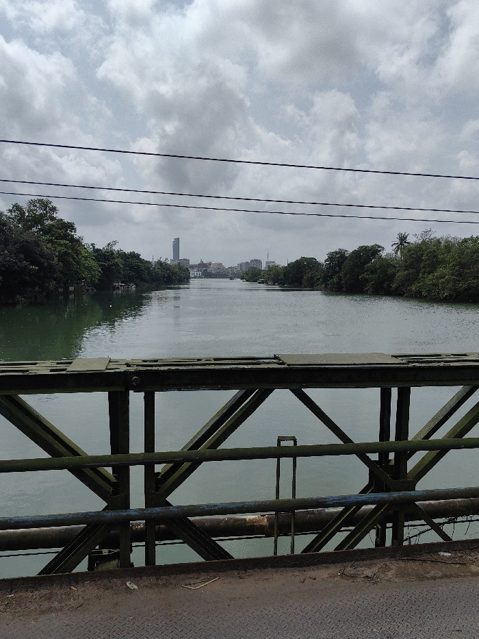 - "The image displays a panoramic view of a river and distant cityscape, captured from a dark green metal truss bridge with a diamond plate deck in the foreground" by FM-eUL7g1, licensed under CC BY 4.0