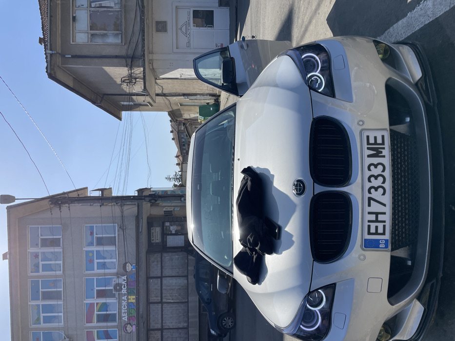 A silver BMW 5 Series sedan, bearing Bulgarian license plate "BG EH 7333 ME," is parked facing the viewer on a paved surface